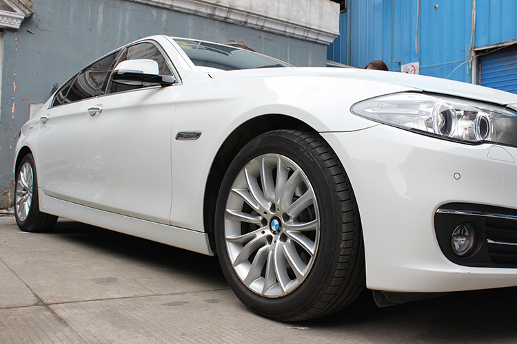 宝马525这款车还是很受大家亲耐的,开这款车的人很多,而且这款车很多车主轮毂想改电镀。之前的话轮毂电镀都是拍的装胎的图,没有装车效果图。今天给大家看一下宝马525轮毂改白电镀配白色车身的效果图。