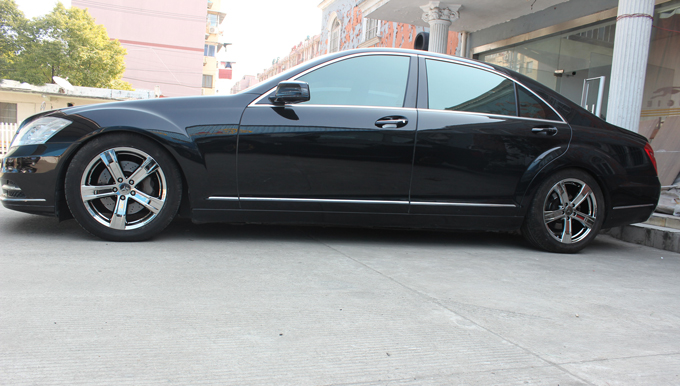 奔驰s350黑色车身烤漆轮毂改电镀黑效果