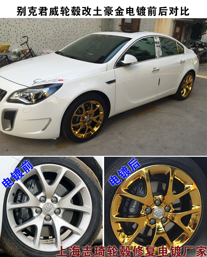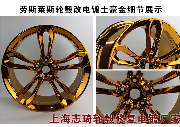 轮毂改电镀土豪金,角度不同拍摄出来的颜色也不相同,所以有些颜色看着深,有些看着浅,这就是他不同于其他工艺的魅力所在。轮毂电镀加工还可根据车主喜好定制。喜欢电镀的车友请咨询:13795383236,把你喜欢的颜色告诉我们。我们一定会做出您满意的轮毂来