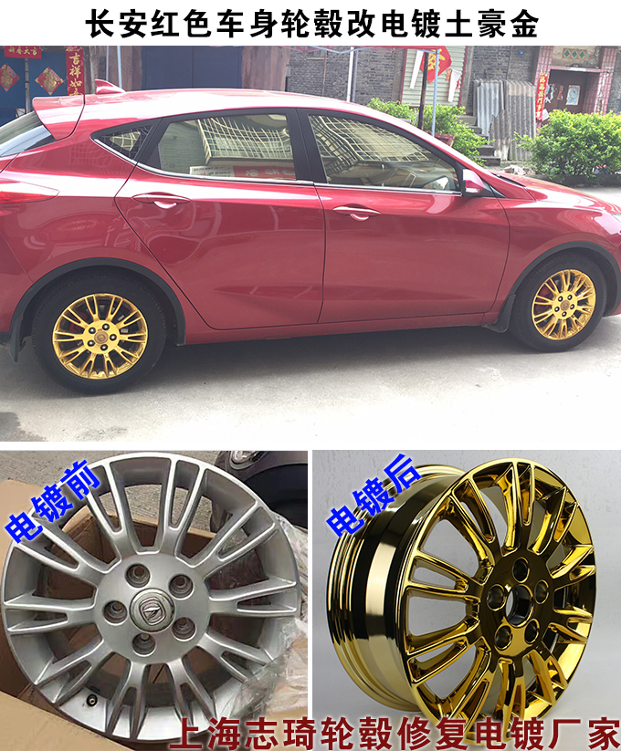 长安红色车身轮毂改电镀土豪金,红配金有没有很骚包。来,告诉我们您车身的颜色,不管您是沉稳型,还是时尚达人型,志琦都可以帮您搭配。让您的爱车更加衬托您的气质。志琦服务热线:021-66519959;电话/微信:13795383236