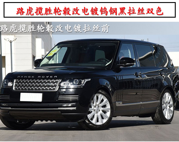 路虎揽胜黑色的车身轮毂改电镀黑拉丝双色再搭配上他原有的红色卡钳做点睛之笔,整体感更强。一起来看看前后对比吧