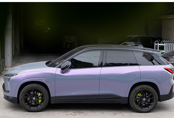 蔚来ec6渐变紫色车身拉丝轮毂改钢琴黑卡钳改荧光绿,前后对比让你看到更直观的变化