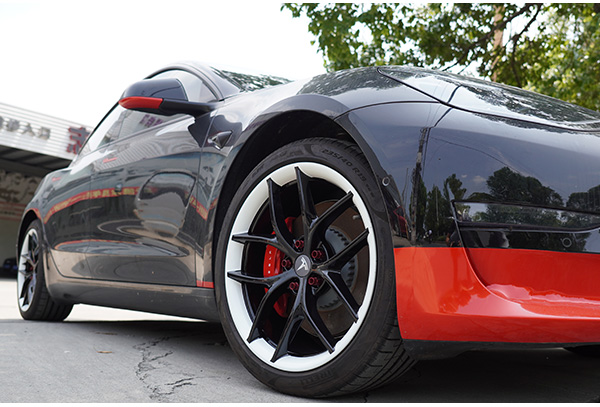 特斯拉model3轮毂改双色烤漆,经典的黑白色系搭配, 永不过时。当然在志琦做轮毂双色每个颜色都是脱漆打磨后按照“三喷三烤”的工艺做的,这就相当于“六喷六烤”,所以不论是成本还是工期都有所增加,因此轮毂改双色费用相对于单色要高,而且时间呢也要长一些。所以如果您也喜欢双色搭配的效果可以直接联系13795383236,当然不管什么颜色都可以联系他。
